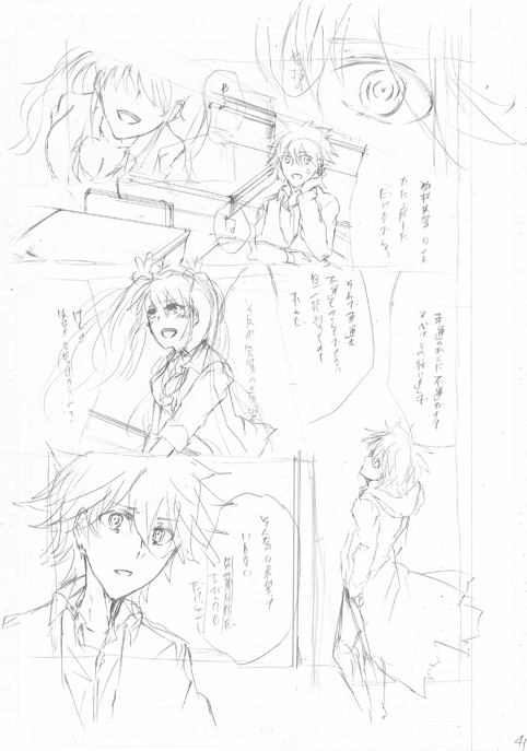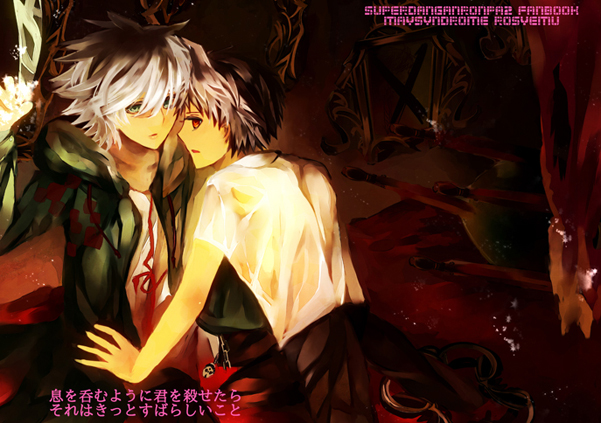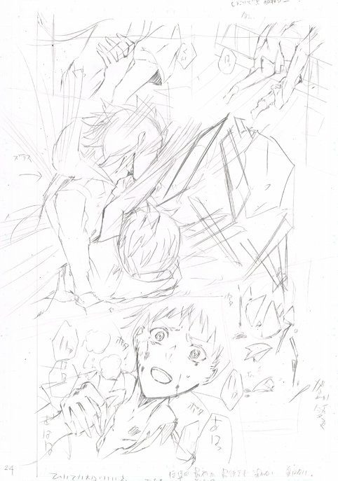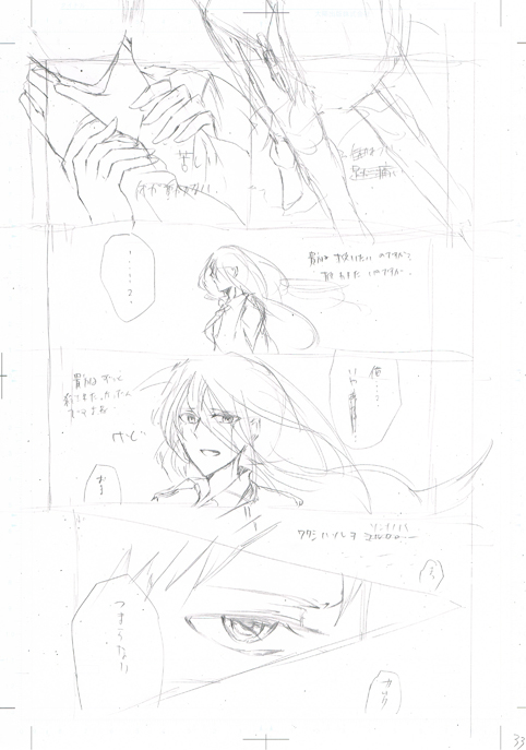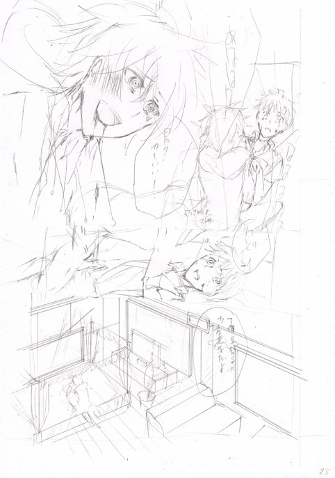 | 『息を吞むように君を殺せたらそれはきっとすばらしいこと』 p68/a5/2013.01.06 ※息を吞むように・・・の内容の解説です。本編またこの同人誌の内容のネタバレを含みますので未読の方は注意してください 狛枝と日向クンをなんとか幸せにしようと頑張った本だったような気がします ゲームクリア後に、衝撃の5章からの展開をどうにかしたくて、いきなり退場しやがって狛枝になんとかしてでも生きて欲しかったので 日向クンに少し・・・というかかなり頑張ってもらって狛枝さんを救ってくれるように動いてもらいました 途中バッドエンドにいきかけた作品でもありますが、日向クンはここで負けないしきっと勝つし、狛枝を救えるはずと思って描いたら 日向クンに少し夢見すぎたかなぁ・・・? となった気もするけどあれはあれでよかったと今は思います。結果論ですね。 ちなみにバッドエンドになりかけた分岐点は、アイランドモードの最中に狛枝がナイフで自殺した所です はじめは日向クンがあそこで狛枝に殺されたり、日向クンが逆に狛枝さんを殺したりけっこうえげつない感じになる予定でした けど、それだとどこかしっくりこなくて狛枝自殺に落ち着きました 狛枝は他人を死に追いやることはあっても、直接自分で手を下すことはあまりないイメージがあります 自分の手を使って人を殺すのは日向クンなイメージです 論破初めての本ということもありめちゃくちゃ丁寧に気合入れて描いた作品です 今見返すと色々恥ずかしいですが、いろいろ頑張っているね~って思いますね・・・ 最後の方に、下絵を載せますね。今はもう下絵は時間はないので描かないけどあの頃の自分は良くやったと思う・・・ 見苦しい補足説明に入ります 最初の狛枝の回想は、狛枝の脳内世界といったかんじでしょうか? もう一人の狛枝クンです ずっと狛枝の中に潜在的に居てわりと冷静に物事を素直に達観してみている狛枝クンです 狛枝の意地とかプライドとかうざったいツンを抜き取った本心に近い狛枝でしょうか だから日向クンのこと好きだと素直に認めている大人な狛枝さんですね 狛枝さんは、自分が日向クンのことが好きだとか、自分は本当は生きたかったという本心を受け入れたくなかったので 最後もうひとりの自分を殺してアイランドモードに臨んだという感じです カムクラさんと日向クンの妄想は、記憶を消す前の脳内会議です んでまぁ日向クンの本編での記憶を消して、自分の才能もカムクラさんのことも何もしらない日向クンと しばらくらーぶらーぶして殺しにかかる酷い狛枝さん 日向クンに酷いことするシーンは楽しかったです・・とても ナイフを足に刺すつもりで描いたのですが、足じゃなくてこれ絶対日向クンの大事なち・・・に刺さってるよ!って友達に言われて爆笑しました 足ですw 狛枝さんが最後に自殺したのは、やっぱり目の前にある現実を受け入れたくなかったんでしょうね この本では、狛枝は生きたい。愛されたい。日向クンが好き。その思いが希望に対する思いより上でその事実を認めたくない が根底にあるので、必死に現実逃避します しょた時代の凪斗のアノシーンは、狛枝の心の中の世界です あのシーンで自分はどうして死ぬことができないんだろう?なーんて言っていますが、自分の本心ってなんだろう?希望って何だろう?って 考えだす分岐点というかそういう風に持っていきたかったんですけど・・・・あははははは描けてないよね・・・うん ラストは色々気付いた凪斗クンということであんな感じです 日向クンは葛藤というものはあまりないですね、この話では 本編後の日向クンは超越したイメージがあって、いろいろぶっとんでます 狛枝を振り向かせるために、狛枝の希望を奪ってでもいいし、仮に狛枝が壊れても自分の方を向いてくれたら もうそれでいい。むしろそれを望んでいる下衆野郎日向クンです ラストは希望よりも自分を取ってくれたので幸せ日向クン 本当に終わる時が来るのならきっと日向クンは狛枝を殺してあげると思う それを覚悟して、狛枝を救おうとしたし、狛枝と生きることを選んだ日向クンでした 最後にナイフと拳銃交換するけど、プログラム時代のナイフをどうやって日向クンは現実世界に持ってきたんだろう・・・?という疑問に気付いてしまったのですが 雰囲気で流してやってください もっと日向クンの葛藤とか悩みを描きたかったですね、今思うと 結構狛枝について深く掘り下げたわかりにくいお話でした んでそういう日向クン視点というか日向クンの葛藤について描いた作品が『舐める』や『息を吞むように君と終わらせた』に続いたんですね~と気付いた むかつく!嫌い!って思いながらずっと一緒にいるのが好きなんです~ 日常生活がボロボロすぎてよく自分生きてたな・・・・と思う感じの酷いスケジュール進行だった・・・・ あんな無茶はしたくねぇ・・・・・・ とにかく楽しかったです こんなダラダラした解説読んでいただきあり